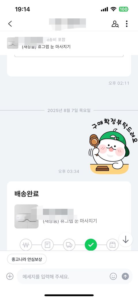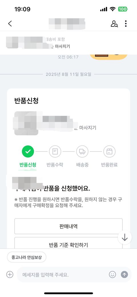그런데 구매자분이 안전결제로 구매를 하셨고 7일에 물건을 받으시고 4일이 지난 지금 사용을 하신 이후 반품을 하시겠다면서 문자까지 와서 처리해달라 하는 내용입니다.