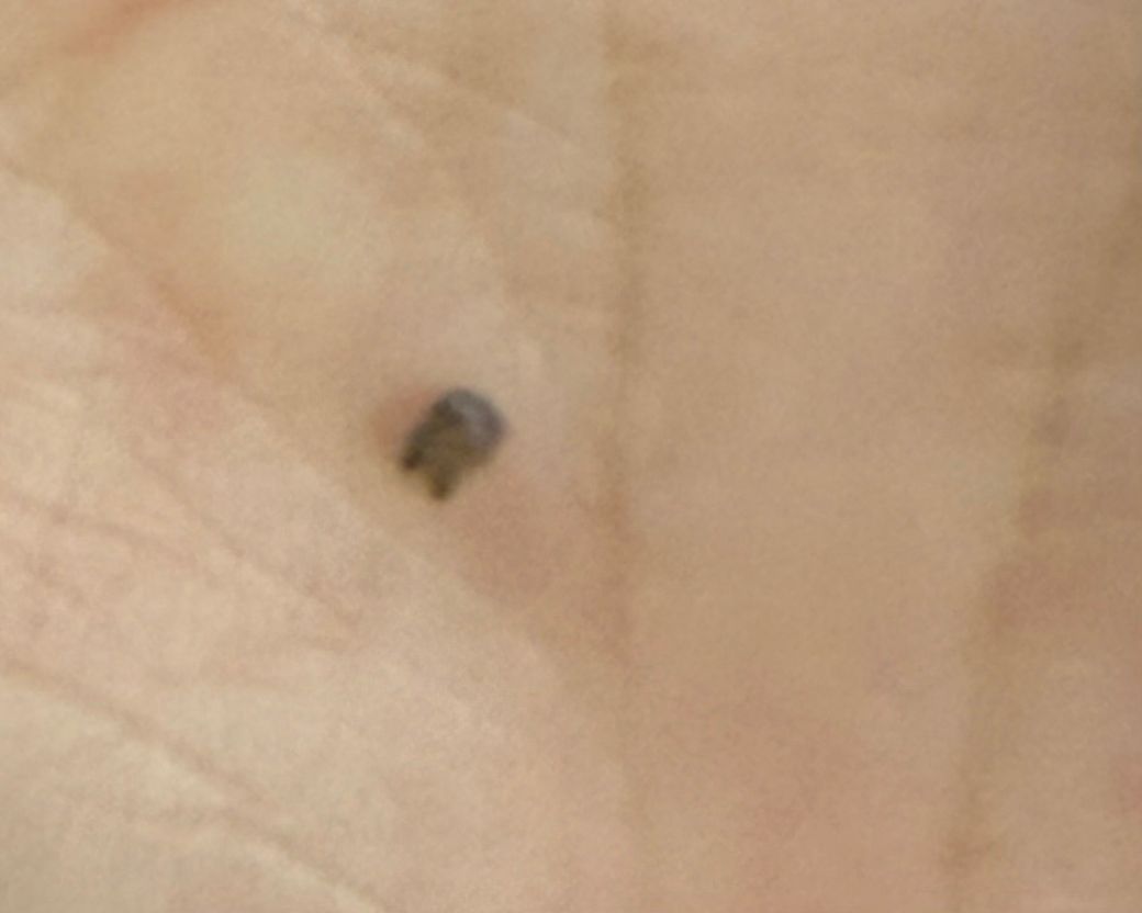 1같은 상태엿는데 처음에는 딱지인줄 알았는데 꾹누르니까 2같은 돌이나왔어요 크기도 좀 큰 것같아요 이게뭔가요………………?