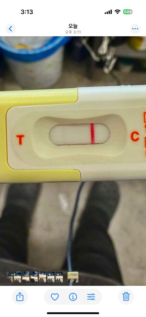 보여주신 사진에서 두 줄인지 한 줄인지에 대한 질문이라면, 한 줄은 음성을 의미합니다. 그러나 임신 초기에는 호르몬이 불안정할 수 있기 때문에 위음성 결과가 나올 가능성도 있습니다.