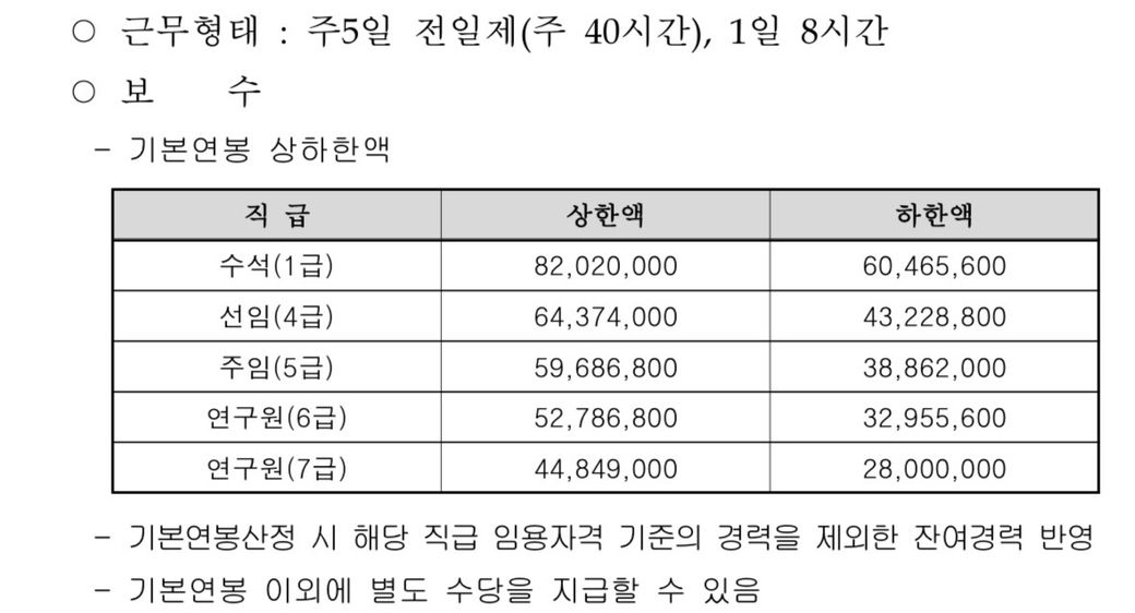 말그대로 상한 및 하한의 금액이 정해져 있으며 채용예정자의 경력에 따라 해당 기관에서 상한과 하한의