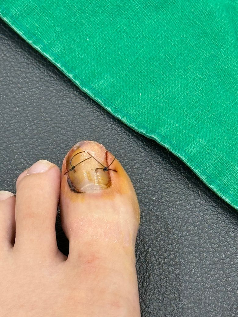 엄지발톱이 들려서 빠졌었어서 정형외과에서 발톱 봉합 수술을하였습니다.