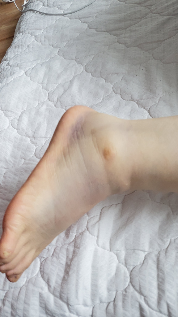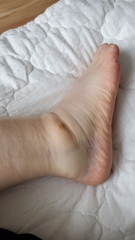 인대파열과 같은 문제를 확인해야 하겠지만 진료가 어려운 상황이라면 발목을 고정해놓아야 합니다. 부목이 반드시 필요한 상황인데, 부목조차 어렵다면 최소한 발목보호대라도 하루종일 착용하시고 2주정도는 유지하셔야 하겠습니다. 2주간 되도록 걷지 마시고, 2주간의 고정기간이 지나면 추가로 4주정도 수면 시에는 고정을 푸는 정도로 하되 일상생활 시엔 꾸준히 보호대를 착용하셔야 합니다.