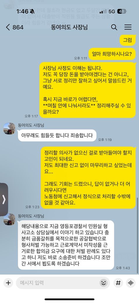근로계약서 미작성으로 사장님과의 대화를 한 내용입니다 사장님이 주장하시는건 금품갈취를 위한 공갈협박이라고 하는데 이게 공갈협박에 해당이 될까요?