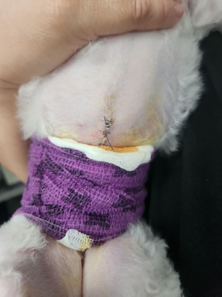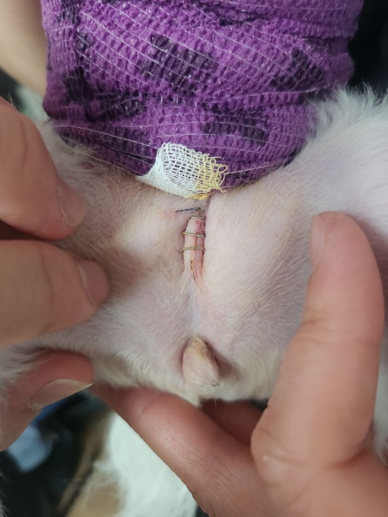 수술부위가 붕대밖으로 노출된 상태기에 강아지가 핥는다면 감염성 염증 발생가능성이 높으니 수술집도한 주치의와 상의하에 어떻게 할지를 결정하시기 바랍니다.