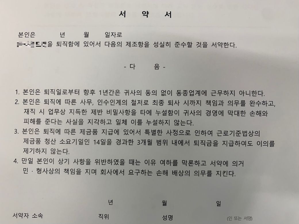 퇴직서 작성 중 이해가 안 가는 조항이 있어 질문 드립니다.