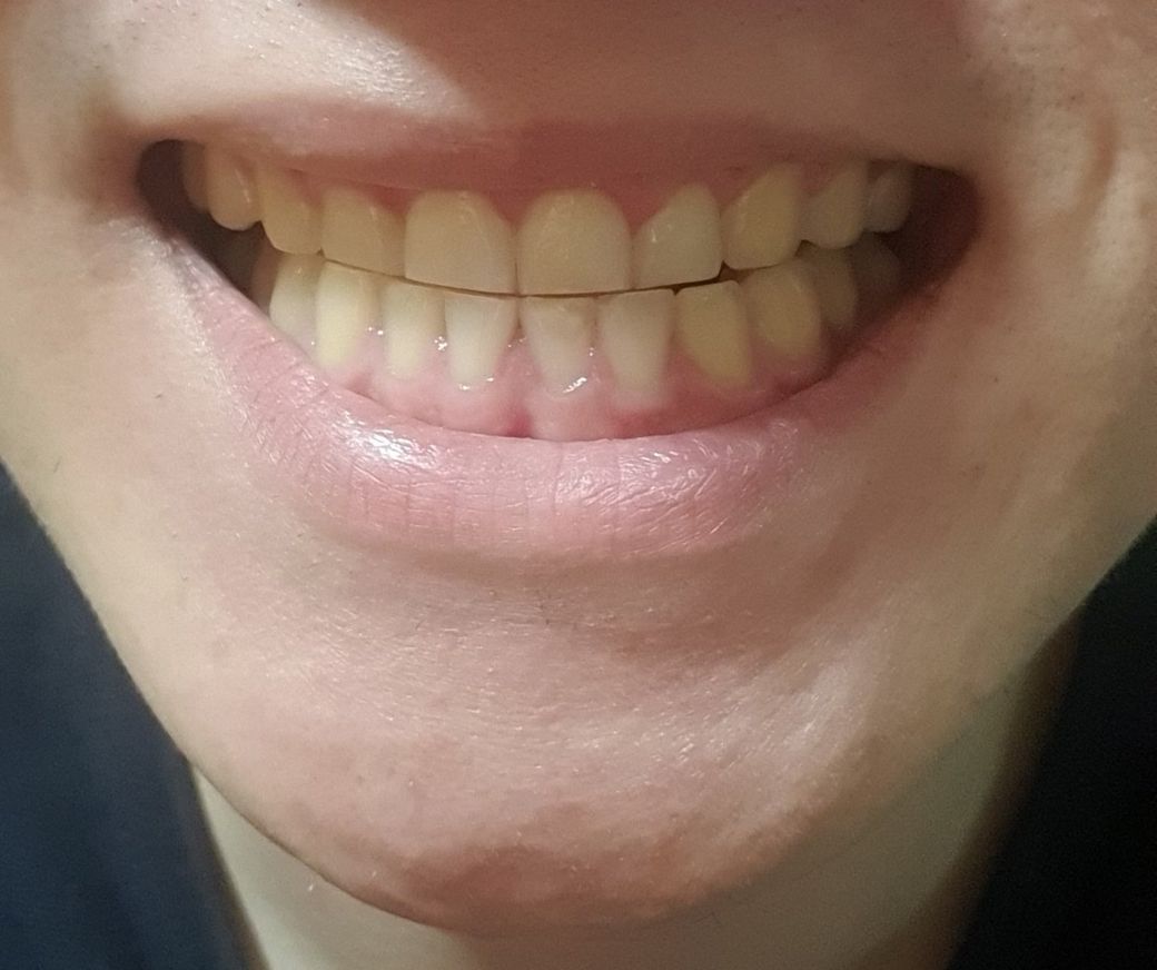 이가 많이 교모된 상태이시네요. 먼저 이갈이가 심하시면 대학병원 구강내과을 가셔서 진단을 받아보세요. 먼저 이갈이 장치를 사용하셔서 더이상 치아가 교모되는걸 방지해주며, 보톡스 맞으시면서 병행치료 하셔야될것같습니다