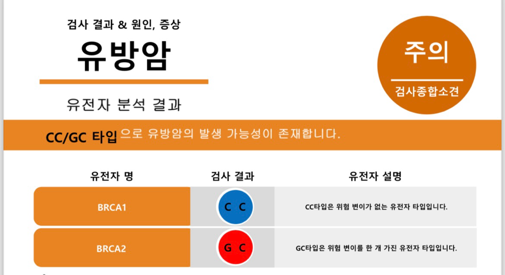 유전자검사를 실시했습니다 (보험사에서 시행, 무료)