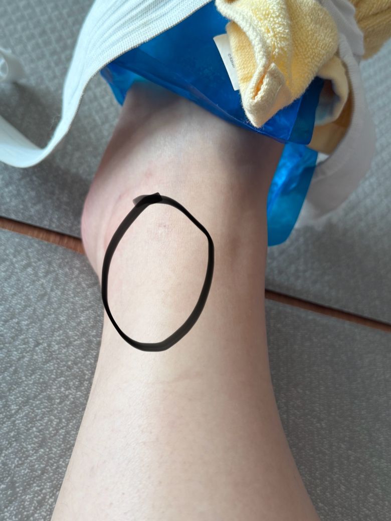 어제 괄사로 종아리 바깥쪽, 발목 마사지 후 발목 외측 근육이 볼록 튀어나옴