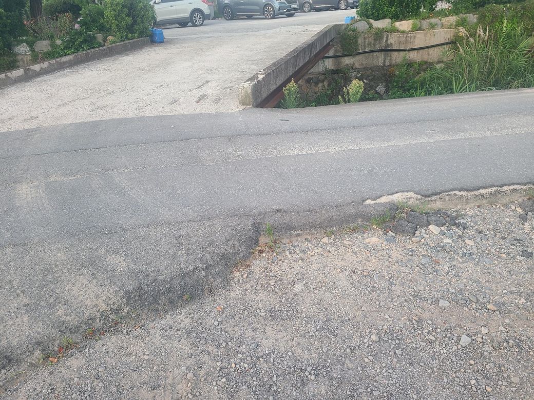 비포장과 아스팔트도로사이에 단차때문에