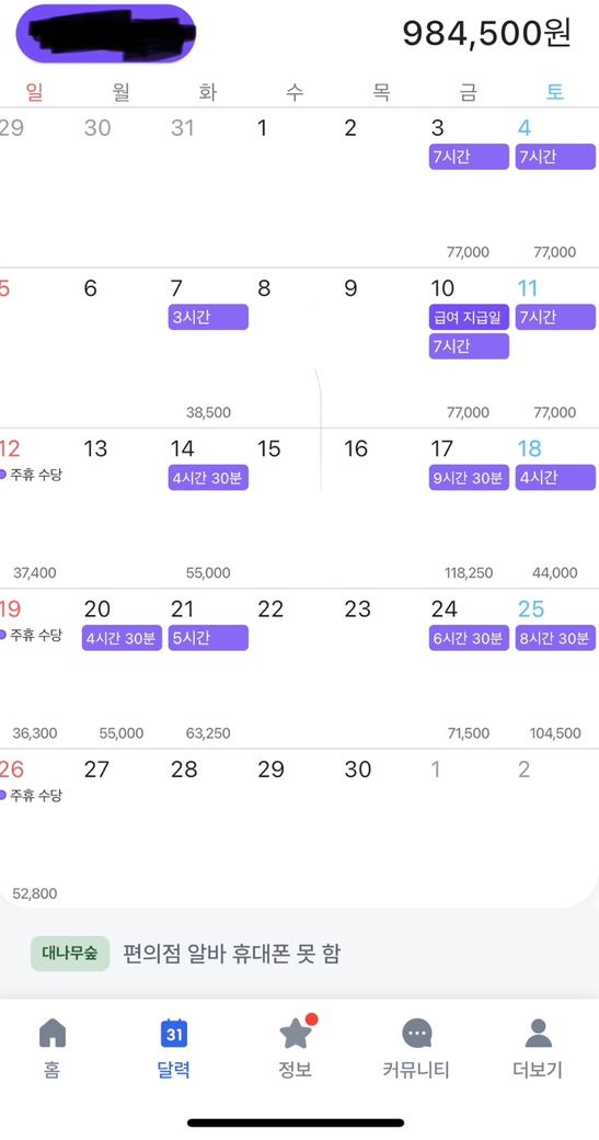 근무는 사진처럼했습니다. 근로계약서는 금,토 6시간만 계약서쓴 상태이고 추가로 몇번 나와줄수있냐해서 평일에 추가로 가서 일했습니다. 계약서상은 주휴수당발생이 안되니까 12일19일26일 주휴수당 저걸 받지못하는건가요? 만약 받을수있는 방법이 있을까요? 월급은 823,070원 들어왔습니다.