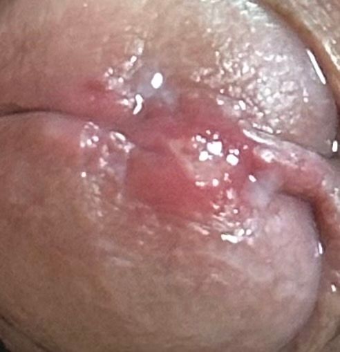 3일전부터 사진에 있는거처럼 잡혔어요 이게 뭐죠? 집에만 있는데.. 비뇨기과 의사분들 도와주세요 성병은 아닐까 걱정됩니다 단순 염증일까요? 일단 연고 바르는 중입니다