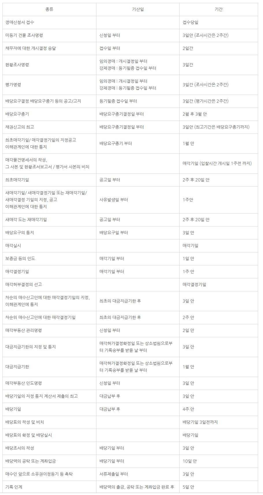 경매 낙찰을 제외하고 경매까지 가는데 소요되는 일정 정보를 알고 싶습니다.