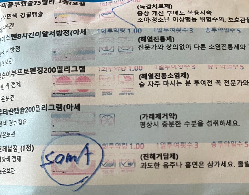 그리고 지금 밥 먹고 병원에서 처방해준 약 먹으려고 하는데 타미스펜은 전문가와 상의 없이소염진통제와 병용하지 말라고 적혀있더라구요