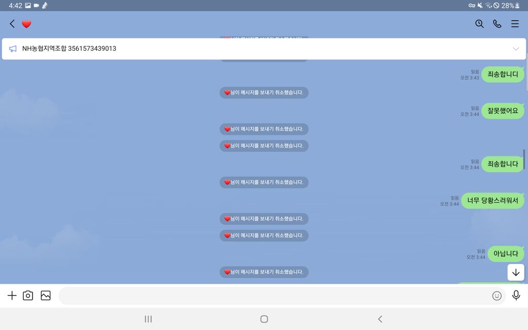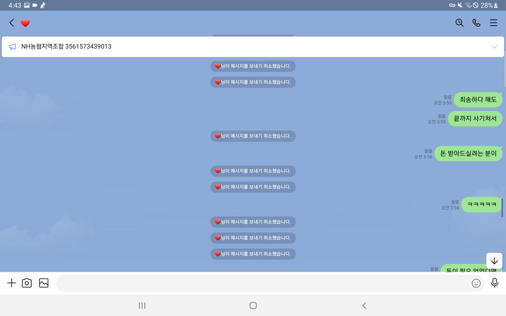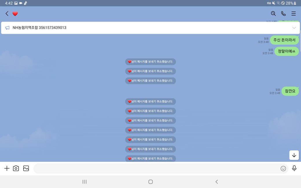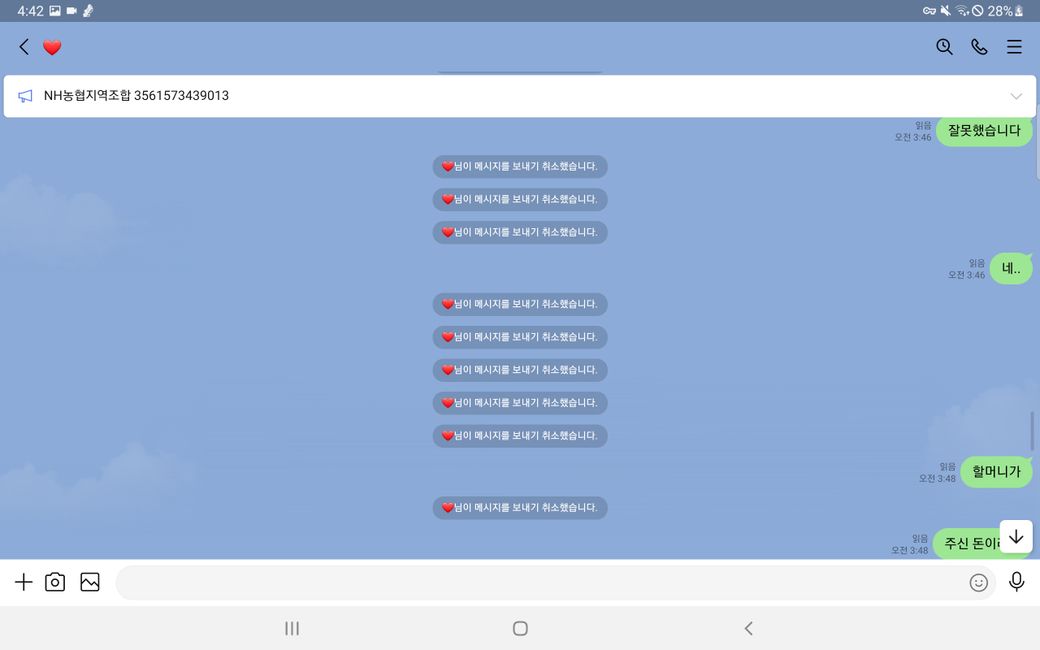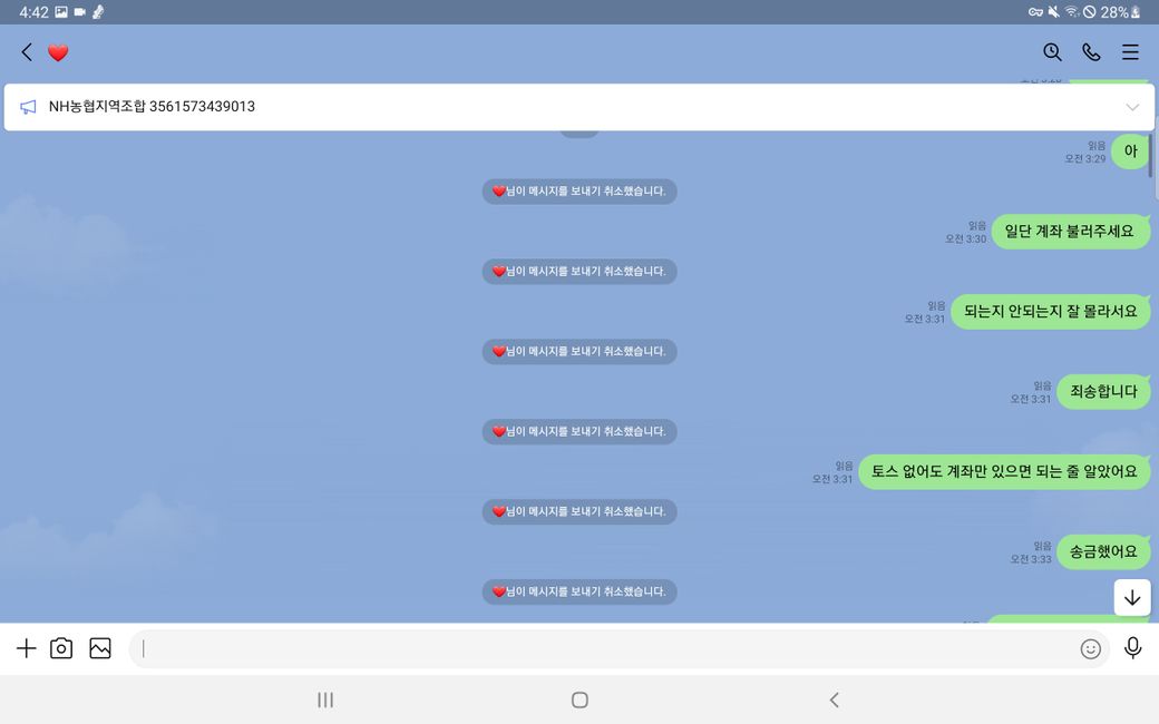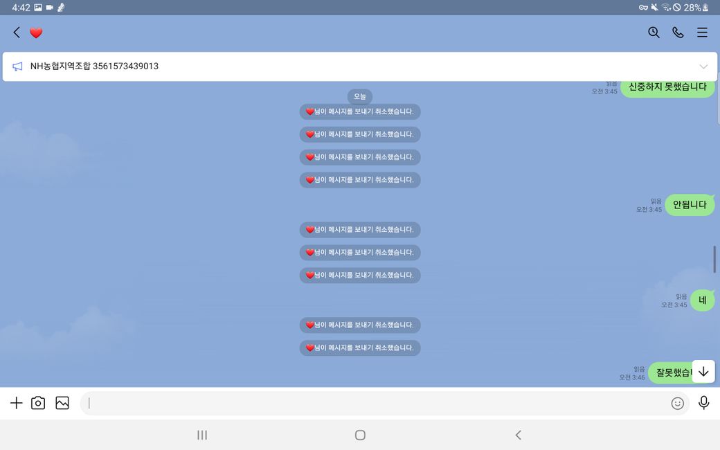 이후 증거인멸을 위해 모든 메세지를 취소하여 발을 빼는 행동을 함 입니다.