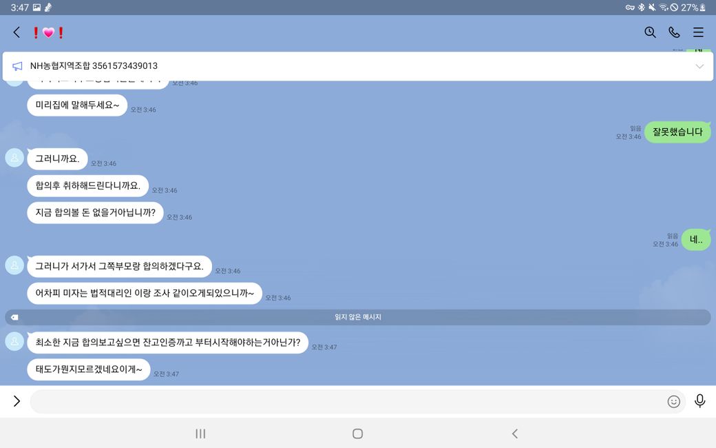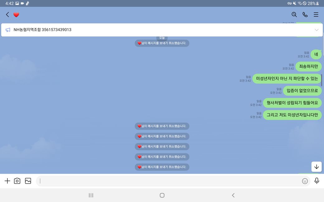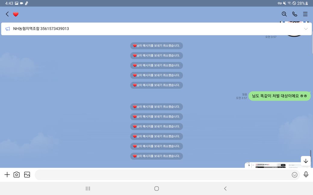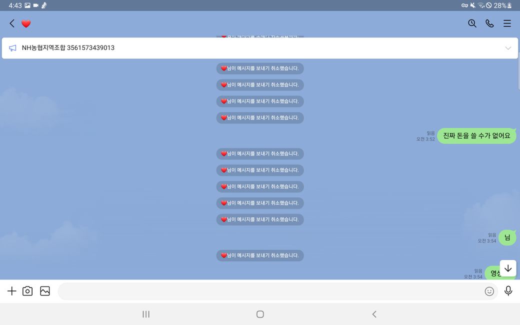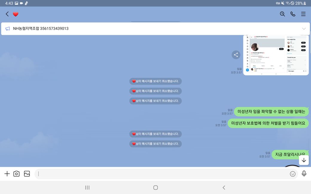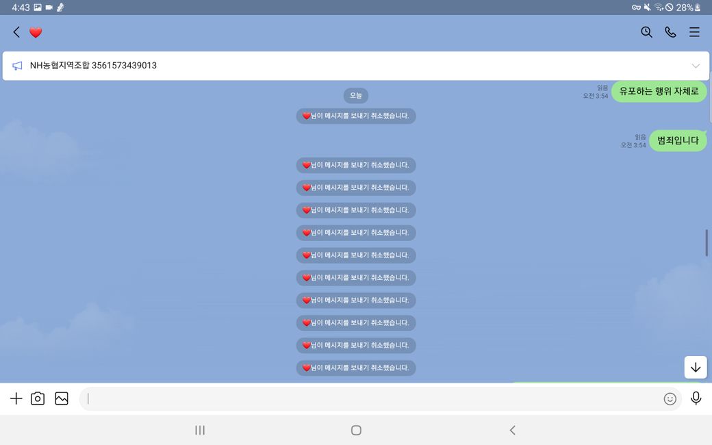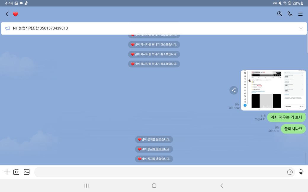 이후 증거인멸을 위해 모든 메세지를 취소하여 발을 빼는 행동을 함 입니다.