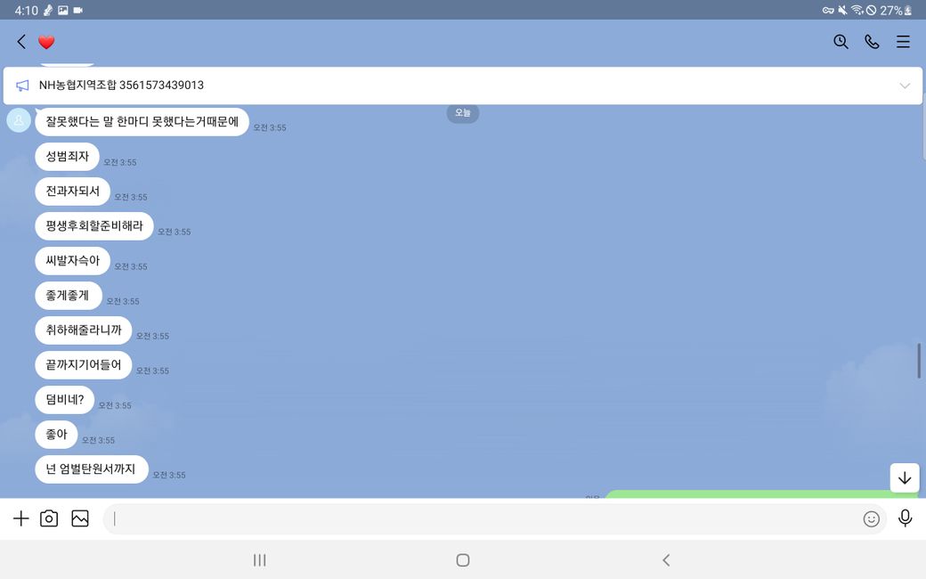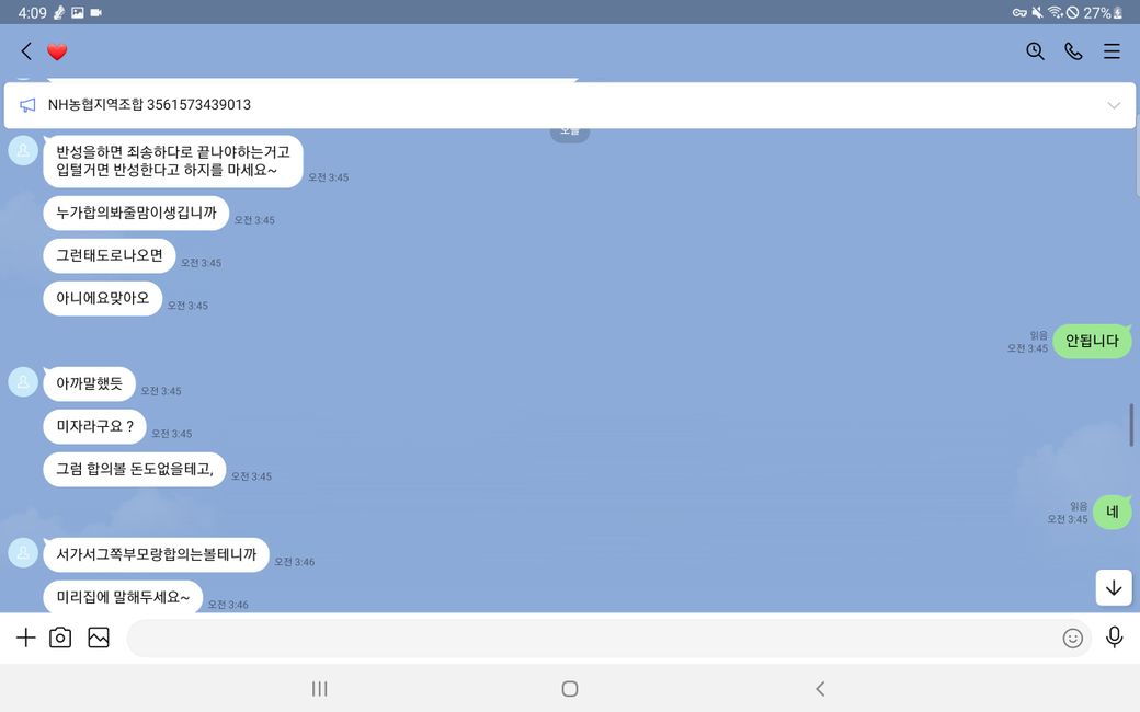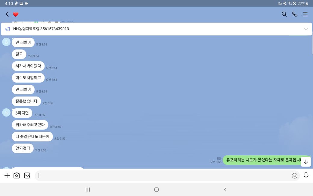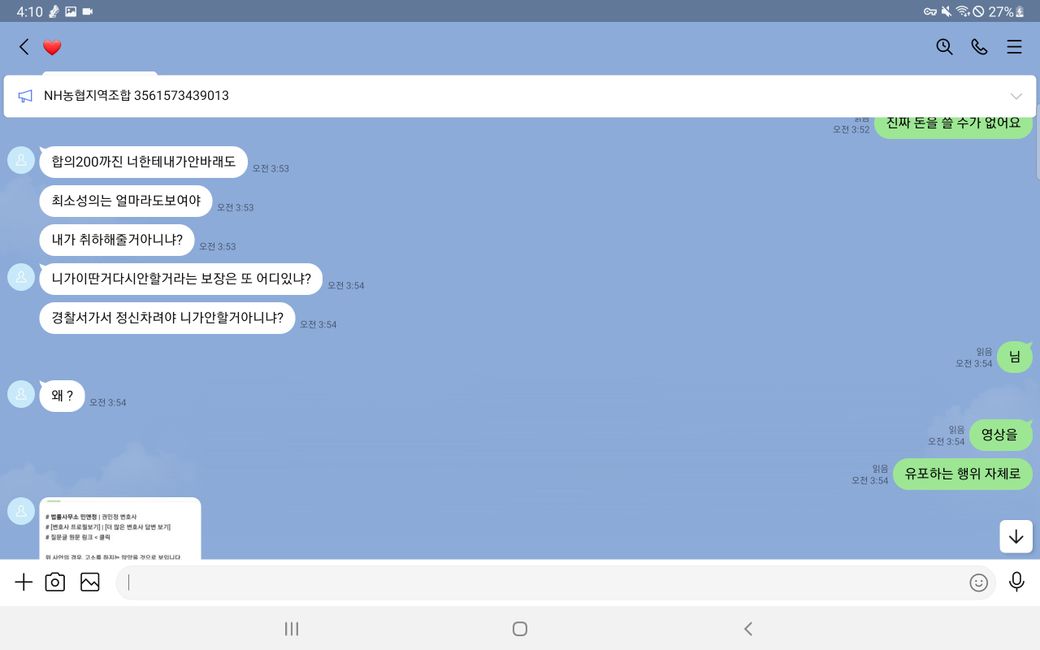 그리고 말에 순응 치 않자 욕설과 폭언 등을 사용하며 더욱 더 거세게 협박했습니다