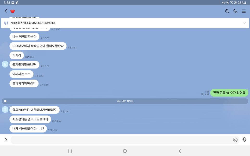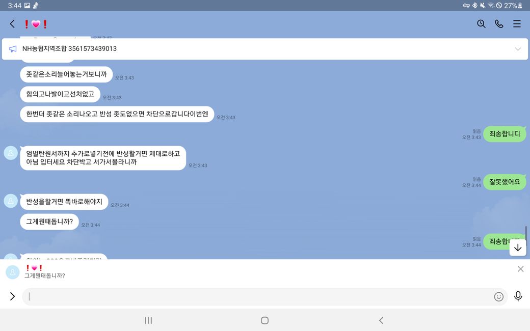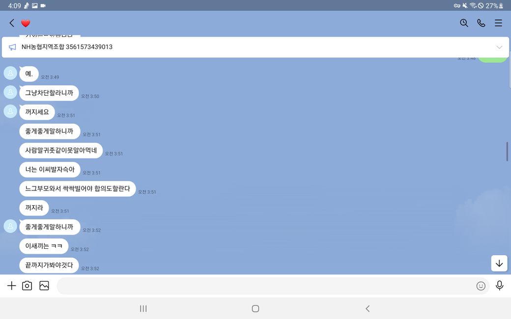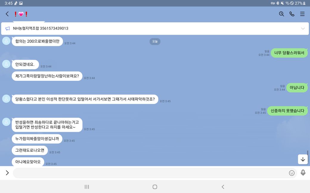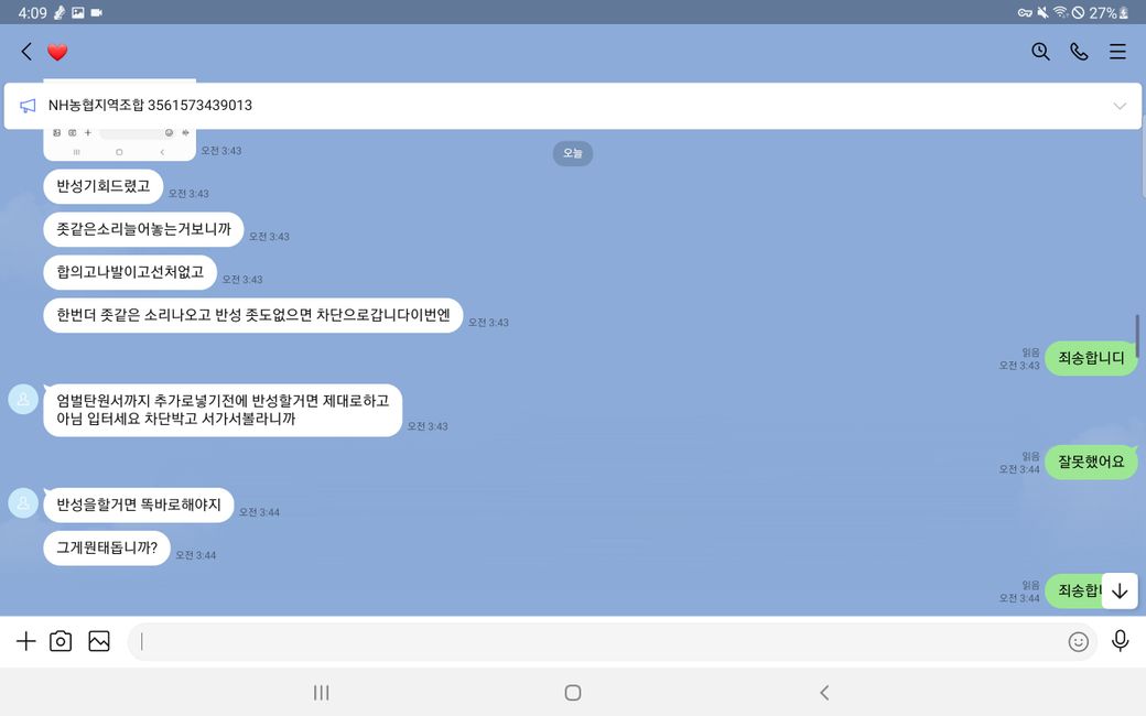 그리고 말에 순응 치 않자 욕설과 폭언 등을 사용하며 더욱 더 거세게 협박했습니다