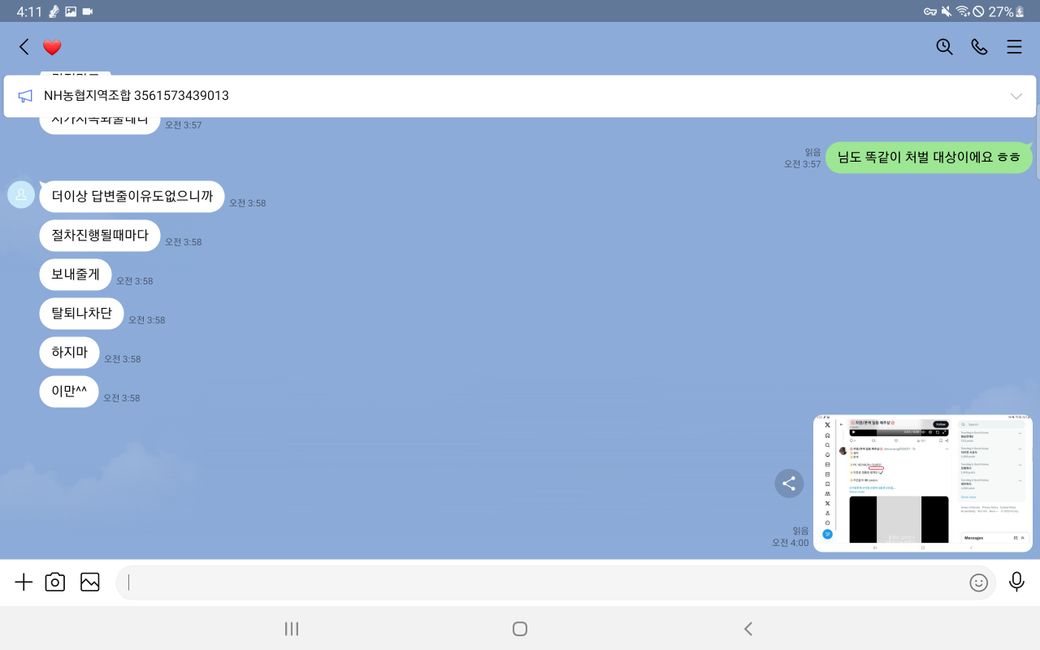 트위터 야한 음성 사기 당했습니다 어떡하죠(미성년자라며 협박합니다)