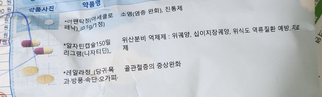 소염진통제,위산조절제, 한방제제의 염증약에 에페리손 근이완제, 모사린 위장운동조절제 추가 복용가능합니다.