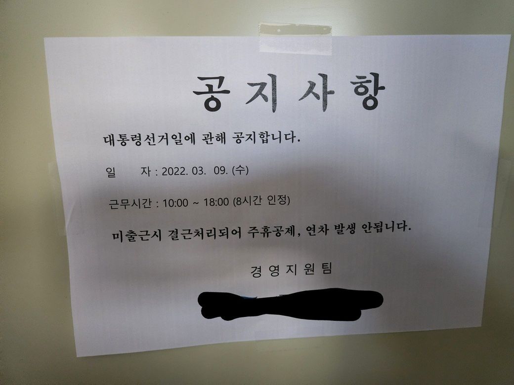제가 알기로 대통령 선거일은 출근하면 특근수당 발생으로 알고 있는데 출근하지 않으면