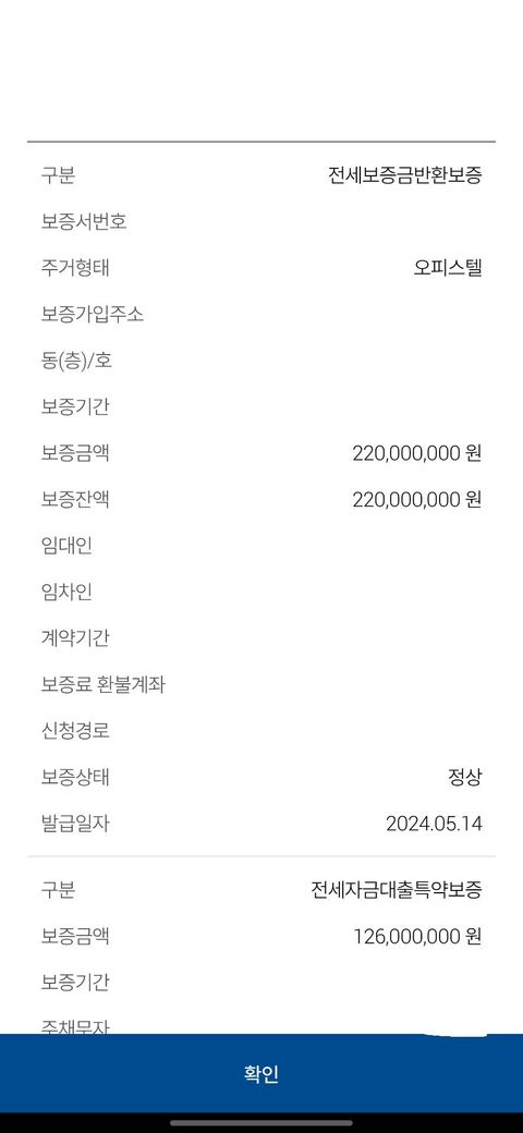 아래 1억2천6백에 대한 금액은 은행에서 대출 받은 금액만 보증 해 줄 수 있는 금액