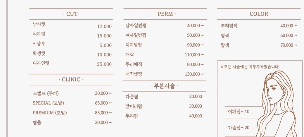 제가 차릴 미용실 가격표인데 어떤지 봐주세요!!