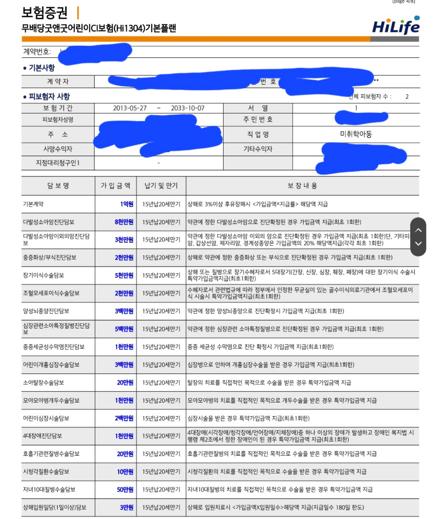 태아 때부터, 가입해서 오래됬는데..