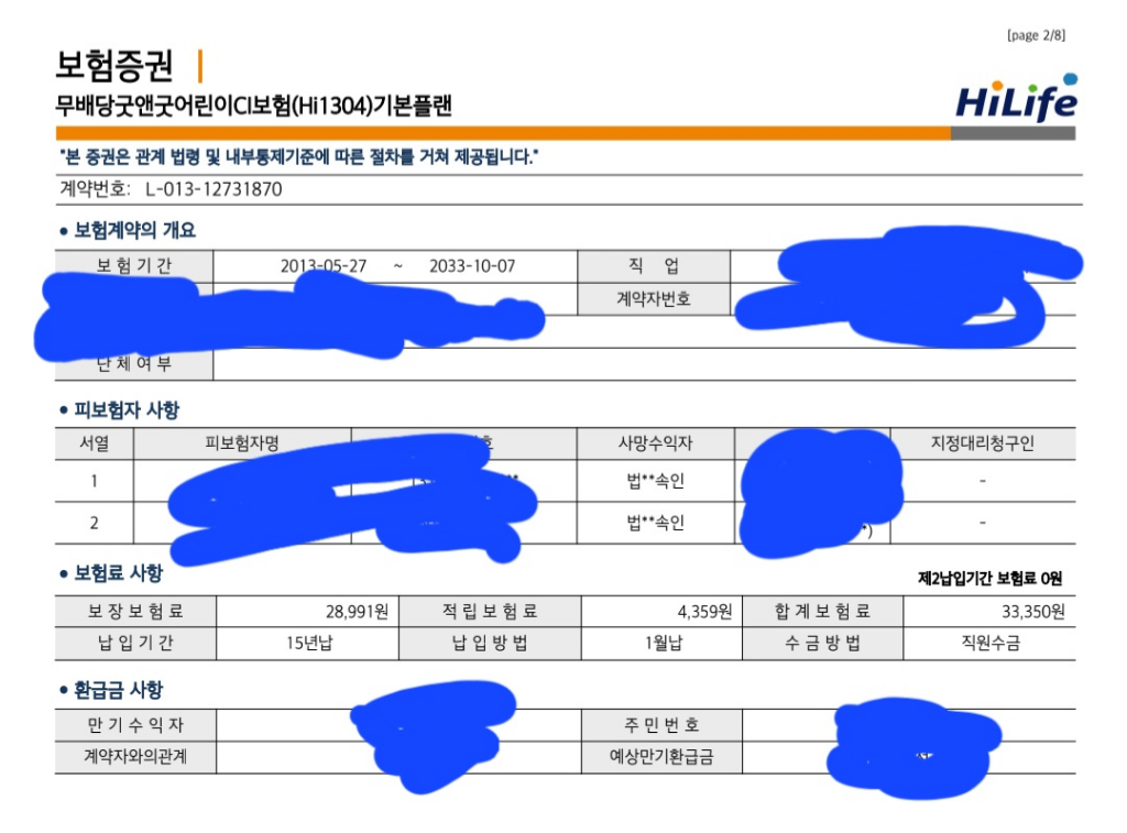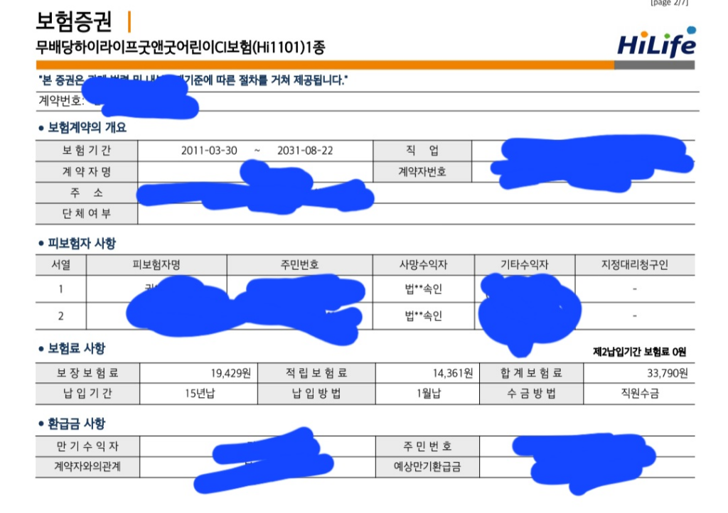 2. 둘재아들 11살짜리 보험