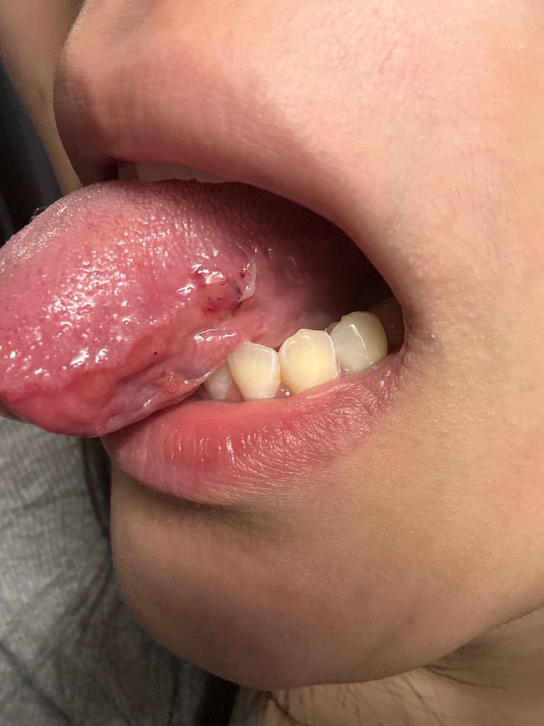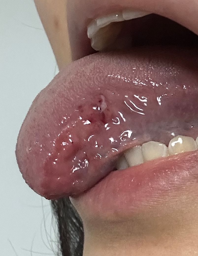사진으로 보이는 양상은 혀를 강하게 씹었을 때 생기는 표재성 열상(얕은 찢김) 형태와 거의 일치합니다. 현재 피가 멈춘 상태라면 응급으로 병원 갈 필요는 낮아 보입니다. 다만 몇 가지 기준은 체크할 필요가 있습니다.
