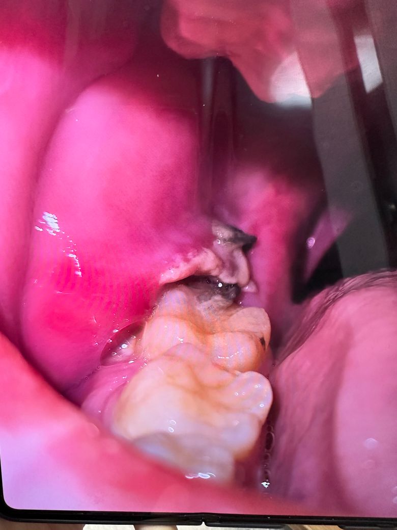 오른쪽 아래 매복사랑니뽑은지 5일 지났는데 부어있는 안쪽 볼살을 잘때 잘근잘근씹은건지 살이 쭉늘어나서 하얗게 자라는것같아요.. 살이 잘아물고 있는건지 염증이있는건지 이물질이끼어있는건지