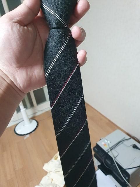 색은 검은색같지만 사진에 있는 넥타이는 좋은일에 이용하는 넥타이 같네요. 차라리 넥타이를 하지 않는것이 좋을것 같습니다. 요즘에는 깔끔한 차림에 넥타이를 하지 않는 사람들도 많아요