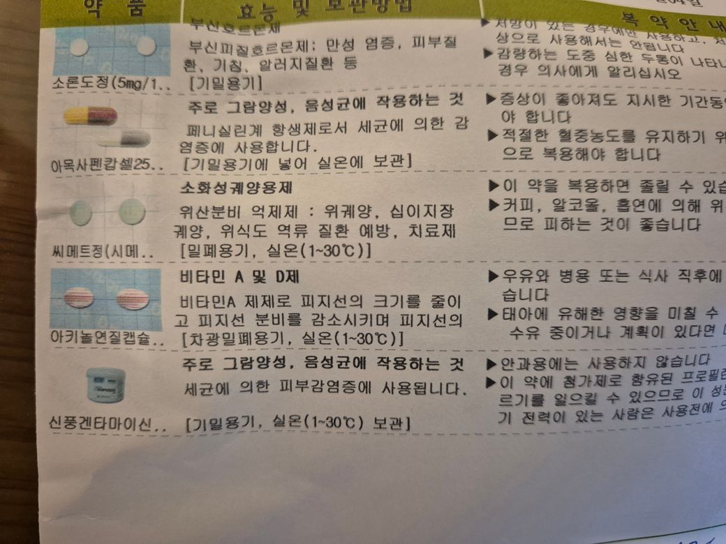 아래 피부과약에 씨메트정은 빼고 드셔도 좋습니다.