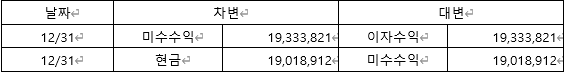 1.2023년 직원에게 대여한 대여금에 대한 이자수익은 19,333,821원이고 12/31일까지 회수미수수익은 19,018,912원 입니다.