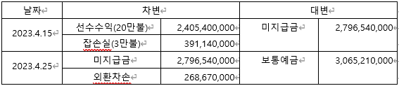 2.2023년 계약이 파기되어 거래처B에 선수수익 20만불과 패널티3만불 총 23만불을 송금하기로 했습니다.
