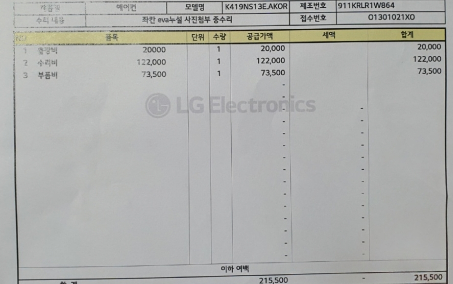 2. 수리비가 높은 부분에 대해서는 LG전자 서비스센터 측에 설명을 요구하실 수 있을 듯 합니다. 아래 참고해 보시기 바랍니다.