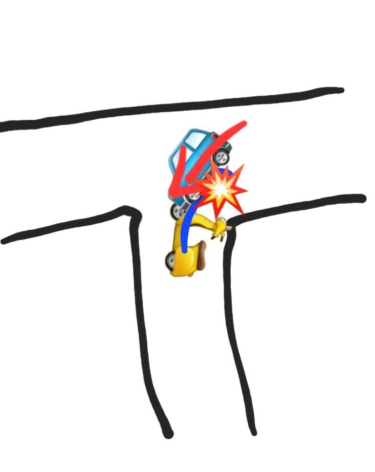 저러한 곳에는 사고가 날 수 있기에 언제든 정지할 수 있는 속도로 서행을 해야 하며 반사경이 있다면 해당 차량이 더 조심을 했어여야 하는 점이 있습니다.