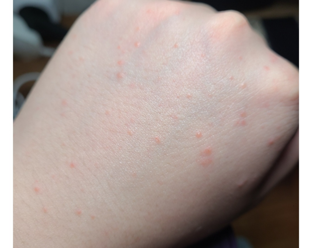 *사진 같은 볼록한 피부염이 목과 가슴 팔 손등에 생겼습니다. 목부분은 좀 가렵습니다