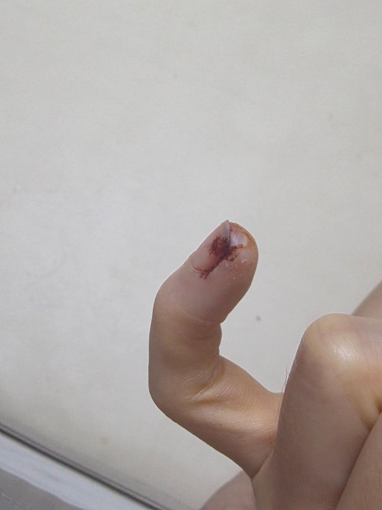 4일전에 칼에 베인 상처인데 지혈이 잘 안될 정도로 꽤 깊게 베였습니다.