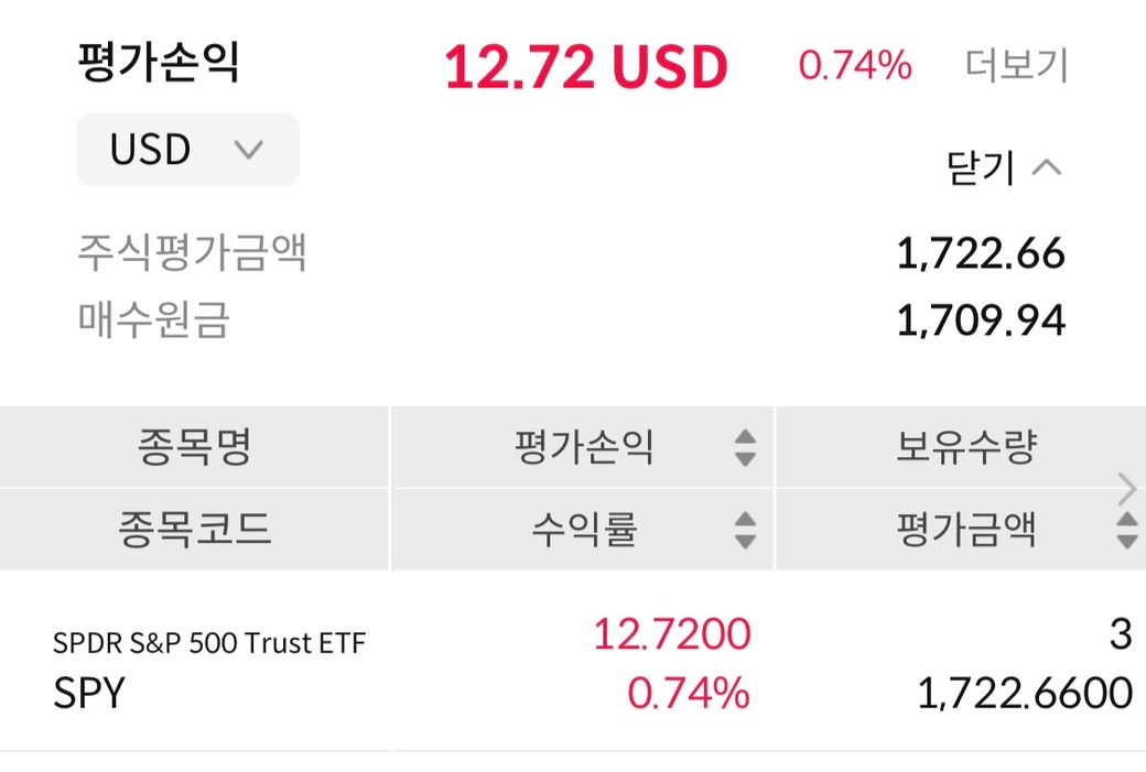 해외주식을 시작한지 얼마 안됐고 가지고있는 주식은 저게 다입니다.
