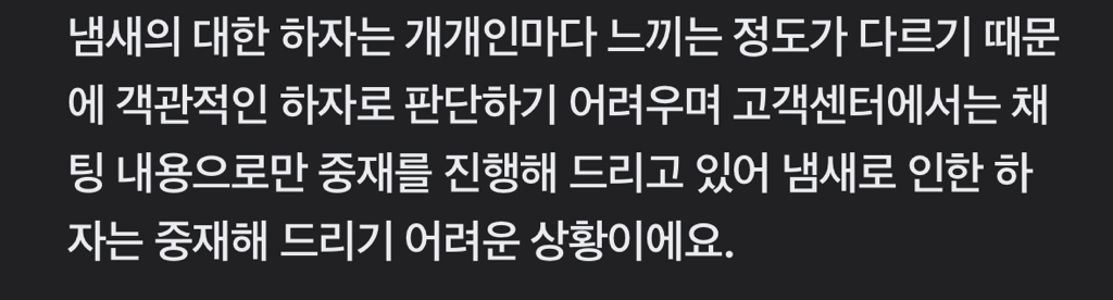 네,물론 냄새 뺄 수 있는 방법도 있습니다. 그런데 저는 애초부터 판매자에게 베이킹용으로 오븐을 쓸거라고 말을 했고 생선냄새가 난다면 저에게 사전고지를 해줘야하는게 맞는거 아닌가요? 냄새가 나는걸 알았다면 구매를 하지않았을겁니다. 저는 냄새가 난다 안난다 냄새의 유무에 대한 정보를 알 권리가 있는거 아닌가요. 그래서 중고사이트에 문의를 했는데 답변이 이렇게 왔네요.