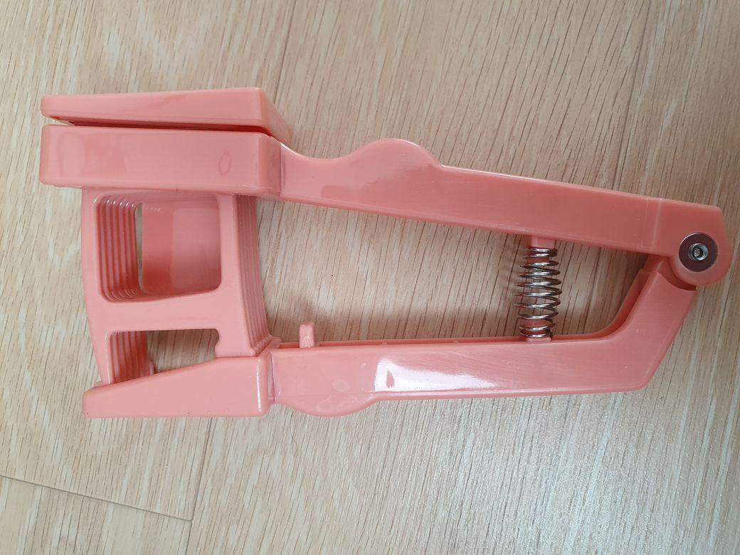 통마늘을 채 써는 도구입니다 ! 식당에서 일 할 때 자주 사용해보았는데, 스프링 건너편 홈에 꼭지를 제거 한 통마늘을 넣은 뒤 스테임플러(?) 누르듯이 꾹 누르면 저희가 아는 납작하게 패 썰린 마늘이 나옵니다 ! 손 쉽게 마늘을 채 썰 수 있는 도구입니다 :) 한번 사용해보세요 ! 정말 쓰기 편한 도구입니다 ㅎㅎ !