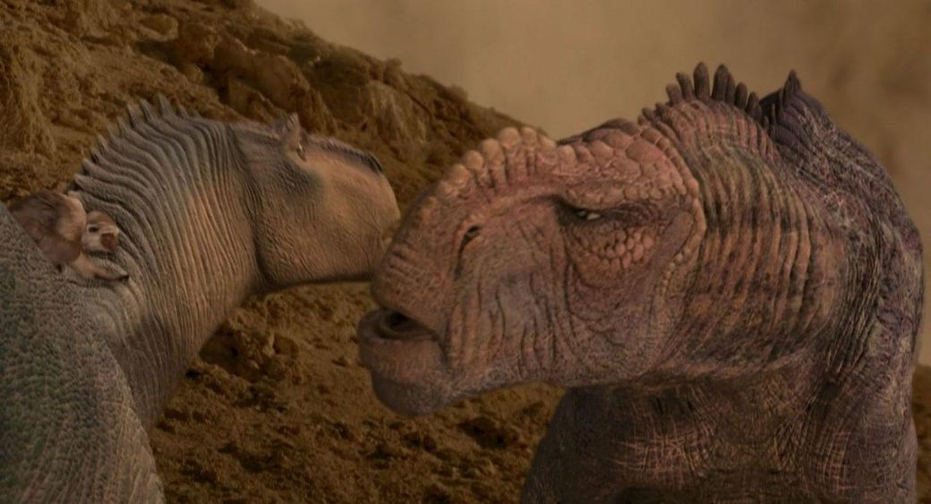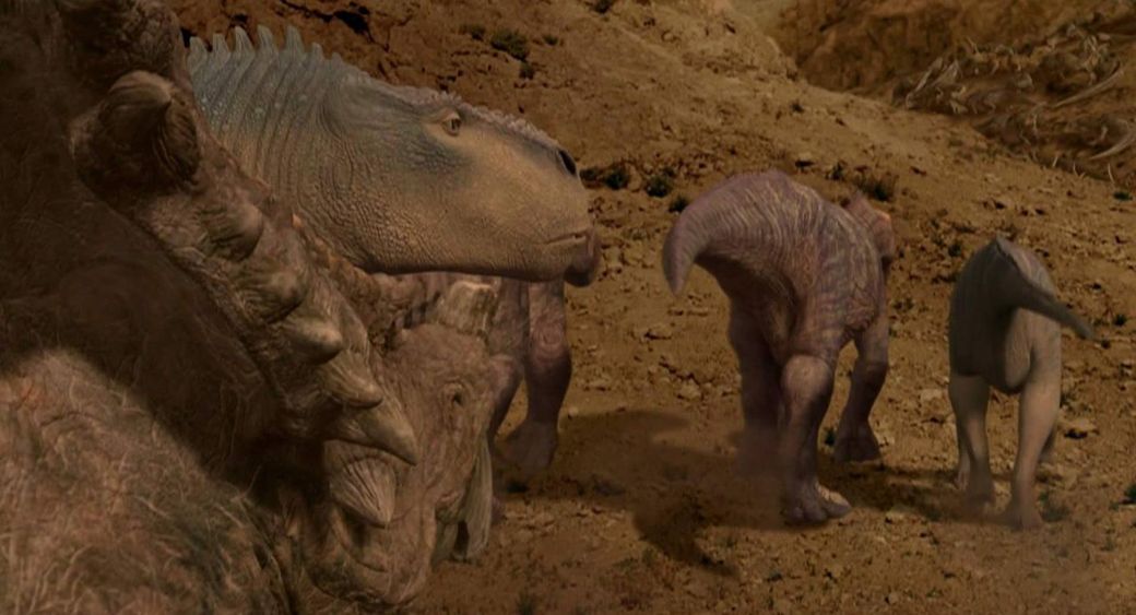 영화 다이너소어(Dinosaur)에서 젊은 이구아노돈 알라다(Aladar)가 늙은 스티라코사우루스 이마(Eema)와 브라키오사우루스 베일린(Baylene)을 챙겨줬지만 크론은 건강한 공룡들만 챙겨주고 이동을 했죠.