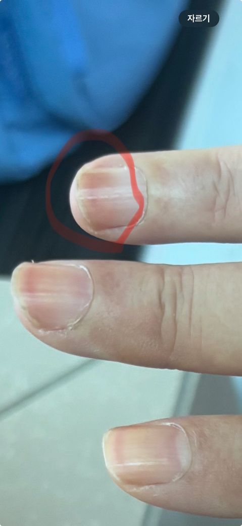 하루만에 손톱 끝 부분이 붉게 변했어요