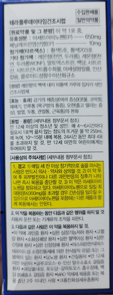 처방약, 테라플루를 먹는 동안에는 금주해야하구요.