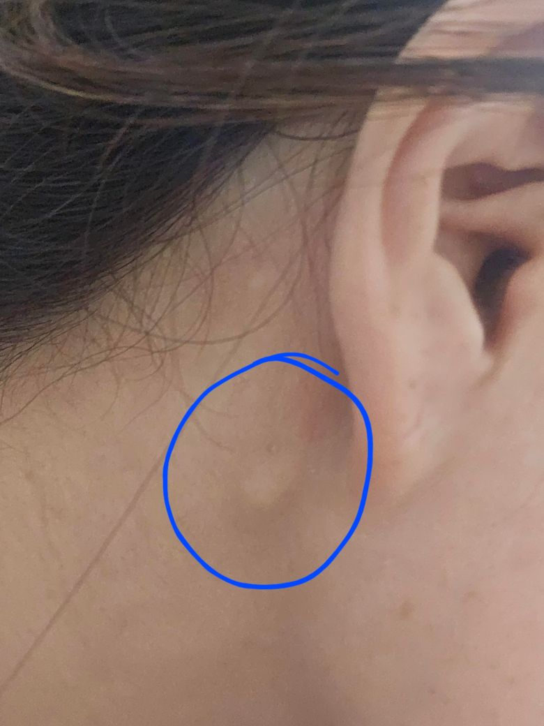 귓볼 바로 뒤에 피지낭종같은게 생겨서 좀 신경쓰이는중이었는데 오늘 오전에 아래쪽으로 뭐가 만져지더라구여 지금 사진찍어보니까 이렇게 작은 혹같은게 튀어나와있는데 이게 뭘까요? 만지면 살짝 통증있어요....
