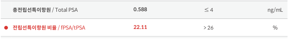PSA 수치가 높지 않기 때문에 fPSA/tPSA 비율에 대하여 크게 걱정하지 않으셔도 됩니다