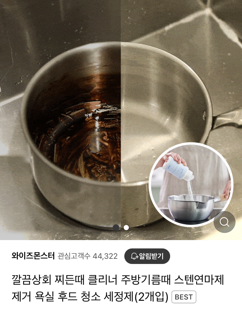 제가 스텐 후라이팬이나 냄비를 세척할 때 주로 많이 사용하는 제품입니다.리뷰도 좋고요^^