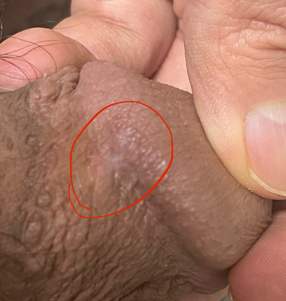 경과관찰이 필요하지만 주변으로 퍼지거나 호전이 없다면 비뇨기과에 내원해보시는 것이 좋겠습니다