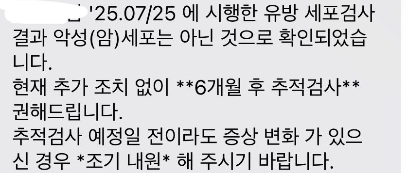 전화해서 물어보니 암은 아닌데 암세포일수도 있으니 계속 추적관찰이 필요하다고 해서 그게 무슨 말인지..