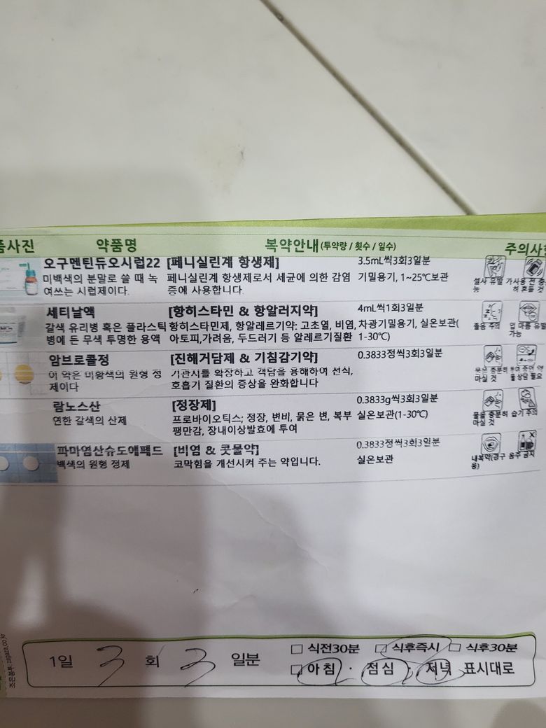 잘때만 기침을 해서 병원 갔더니 축농증 진단받고 아래 사진과 같이 처방 받아 와서 먹였어요